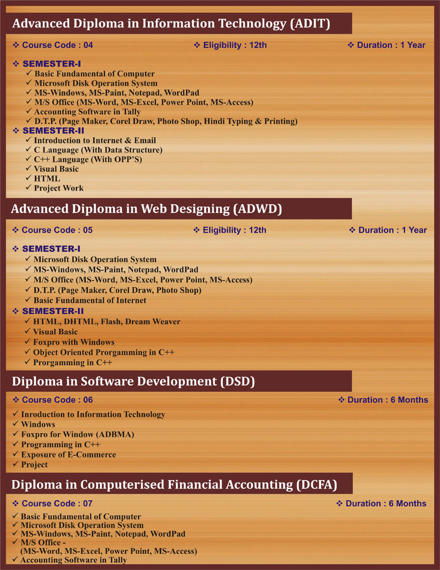 • Short Term Computer & Vocational Courses